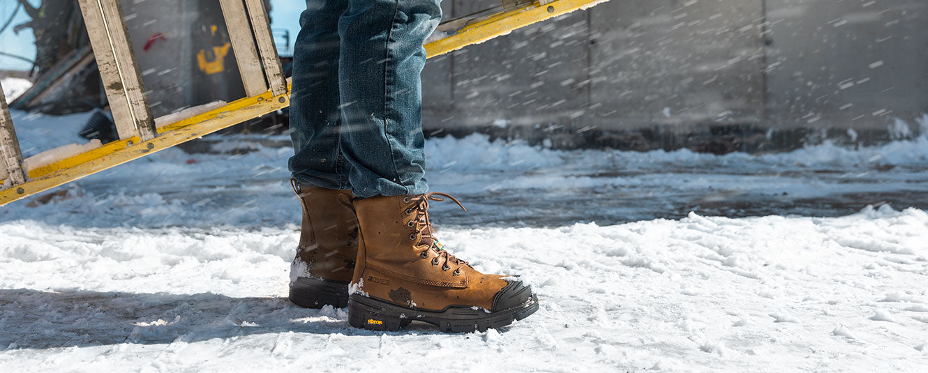 The AGILITY™ ARCTIC GRIP™ Collection is engineered to cater to diverse cold weather conditions. These CSA Z195-14 certified work boots are designed and assembled in Canada and equipped with the VIBRAM® ARCTIC GRIP™ advanced cold weather gripping system for unmatched traction on wet and dry ice. Optional features include the AIRFLOW™ Waterproof Membrane and 3M Thinsulate™ insulation, providing a thermal comfort rating of -20°C.