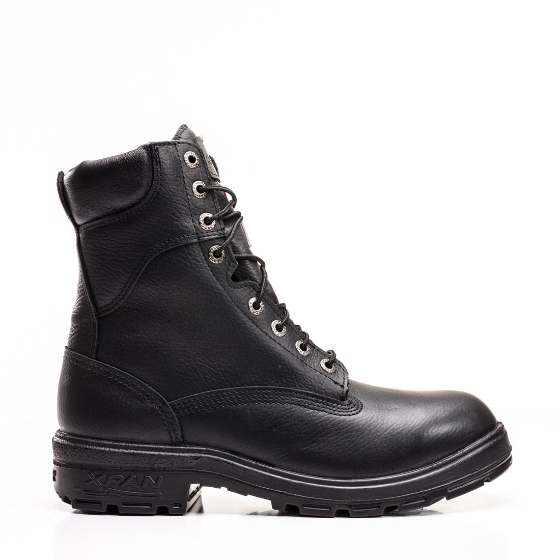 (CSA Z195-14) Certified grade 1 protective toecap that withstands impacts up to 125 joules and certified puncture-resistant sole that withstands at least 1200 Newtons (270 pounds)